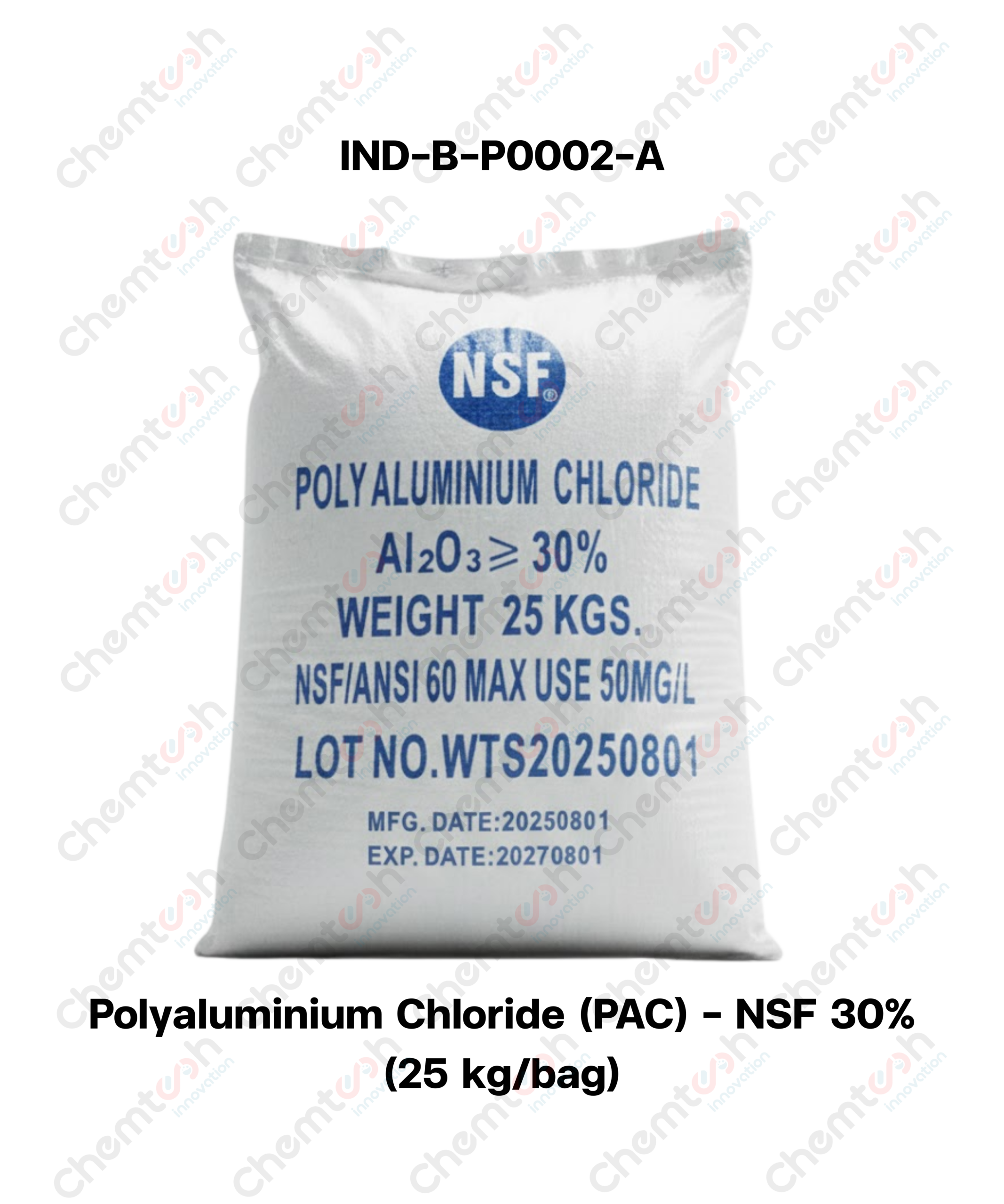 คุณสมบัติเด่น: คือผ่านการทดสอบมาตรฐาน NSF/ANSI 60 ซึ่งรับรองว่าปราศจากสิ่งปนเปื้อนที่เป็นอันตรายและโลหะหนักเกินเกณฑ์มาตรฐานสากล ช่วยจับตะกอนได้รวดเร็ว ก้อนตะกอน (Floc) มีขนาดใหญ่และแข็งแรง ทำให้ได้น้ำที่ใสสะอาดและปลอดภัยสำหรับการอุปโภคบริโภค
