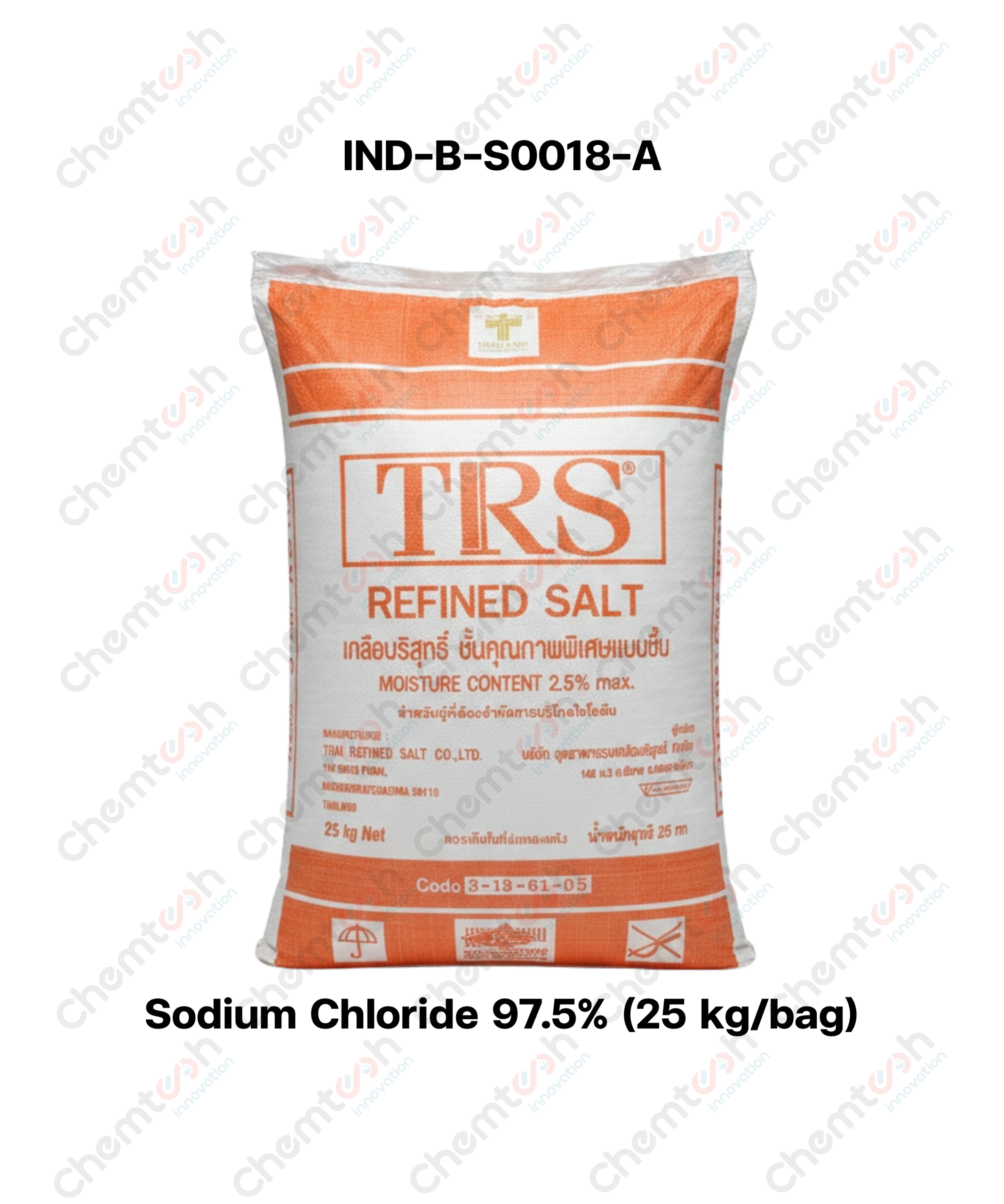 • การเก็บรักษา: เก็บในที่แห้งและมีการระบายอากาศที่ดี หลีกเลี่ยงพื้นที่ชื้น เนื่องจากเกลือสามารถดูดความชื้นได้ดีมาก ซึ่งจะทำให้บรรจุภัณฑ์เปื่อยยุ่ยและเกลือแข็งตัวเป็นก้อน